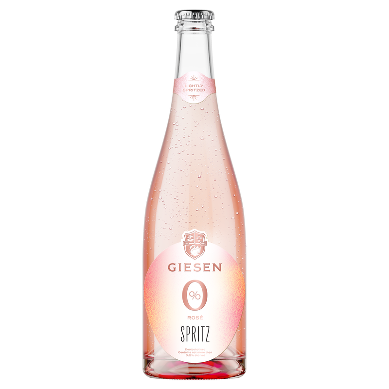 Juicy, floral, lightly berry-forward - the Giesen 0% Rosé Spritz blends Sauvignon Blanc and Riesling with a touch of Syrah for colour and finesse. You'll find citrus, tropical fruit, and just a whisper of red berries and rose petals in the glass.